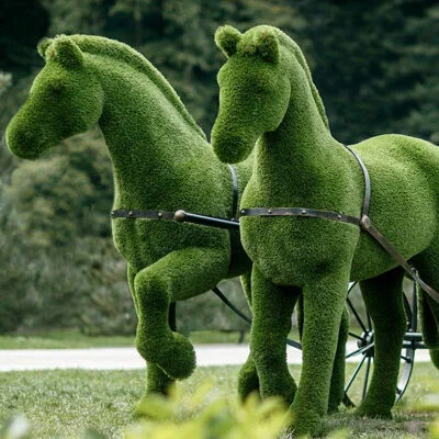 Незвичайні та розкішні – такими словами можна описати топіарні скульптури, які наче живі виростають із землі. Хоча спочатку топіарна садово-паркова скульптура мала винятково природне походження. В основі кожної скульптури був звичайний кущ, який в результаті майстерні стрижки протягом тривалого часу набував певної форми. Звичайно, прикрасити свій сад такою скульптурою було непростим завданням: по-перше, це недешеве задоволення, а по-друге, потрібно було чимало часу, щоб створити таку фігуру. Сьогодні топіарії набули величезної популярності в ландшафтному дизайні, та й отримати таку скульптуру стало набагато простіше.